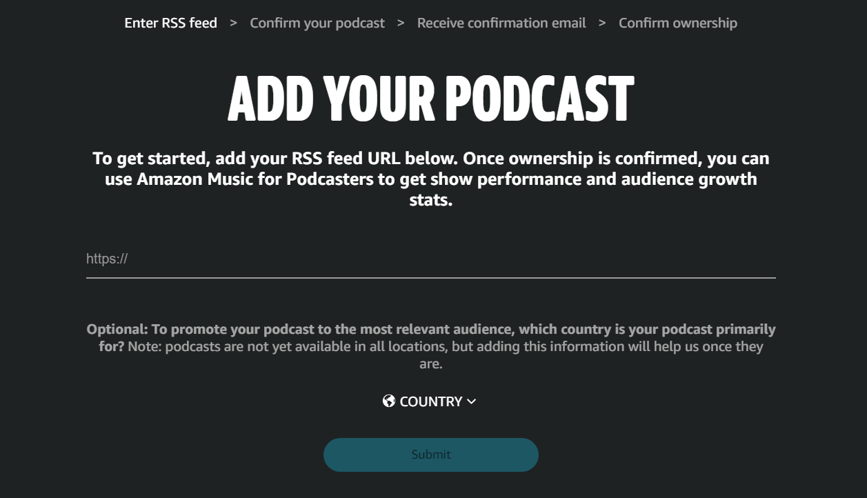Why Claim: Amazon has 55 Million global customers and growing rapidly and “[…] enabling your content to be distributed on Amazon Music and Audible allows you to grow your audience by reaching these customers, many of whom will be new to podcasting.”